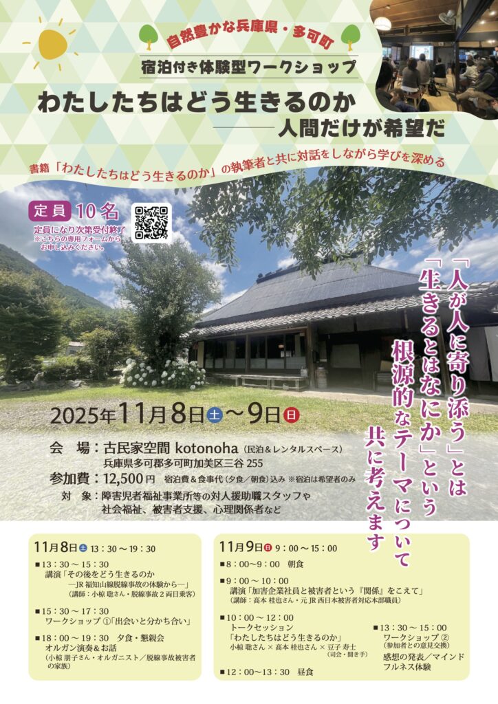 「わたしたちはどう生きるのか—JR福知山線脱線事故から20年」出版記念トークイベントに参加してくださったNPO法人ラルゲット様が、同タイトルで宿泊付きワークショップ「わたしたちはどう生きるのか〜人間だけが希望だ」を開催してくださることになりました。